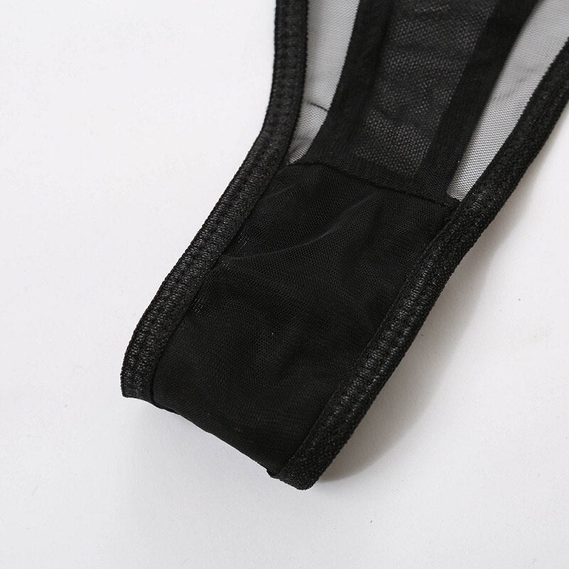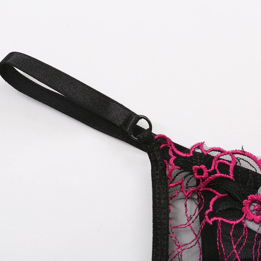 Lingerie dentelle sexy rouge noir string ficelle et soutien-gorge Transparence Fleurie